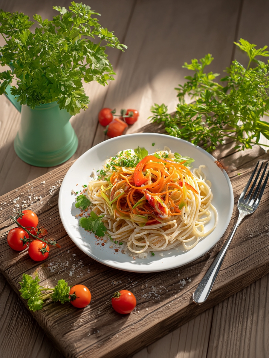 Состав: Макаронные изделия из пшеничной муки твердых сортов, перец сладкий, кабачки, сельдерей, морковь, базилик сушеный, соль, перец черный, масло сливочное, масло оливковое, чеснок, тимьян.